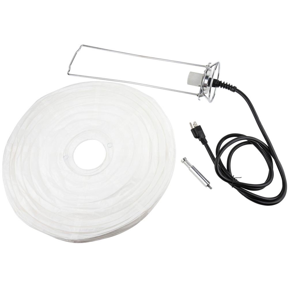 The Kupo 18″ China Ball with E27 Socket, or Chinese Paper Lantern, consists of a paper globe with a ceramic E27 socket and a chrome plated 3/16″ wire frame to support it. The China Ball gives soft omnidirectional light. Under the socket there is a metal disc with both female 1/4″-20 and 3/8″-16 threaded holes for easy mounting. Attached to the metal disc is a metal ring to clip on fabric or gels to control the direction, color and quality of light. The cable is reinforced where it enters the socket for long life.
