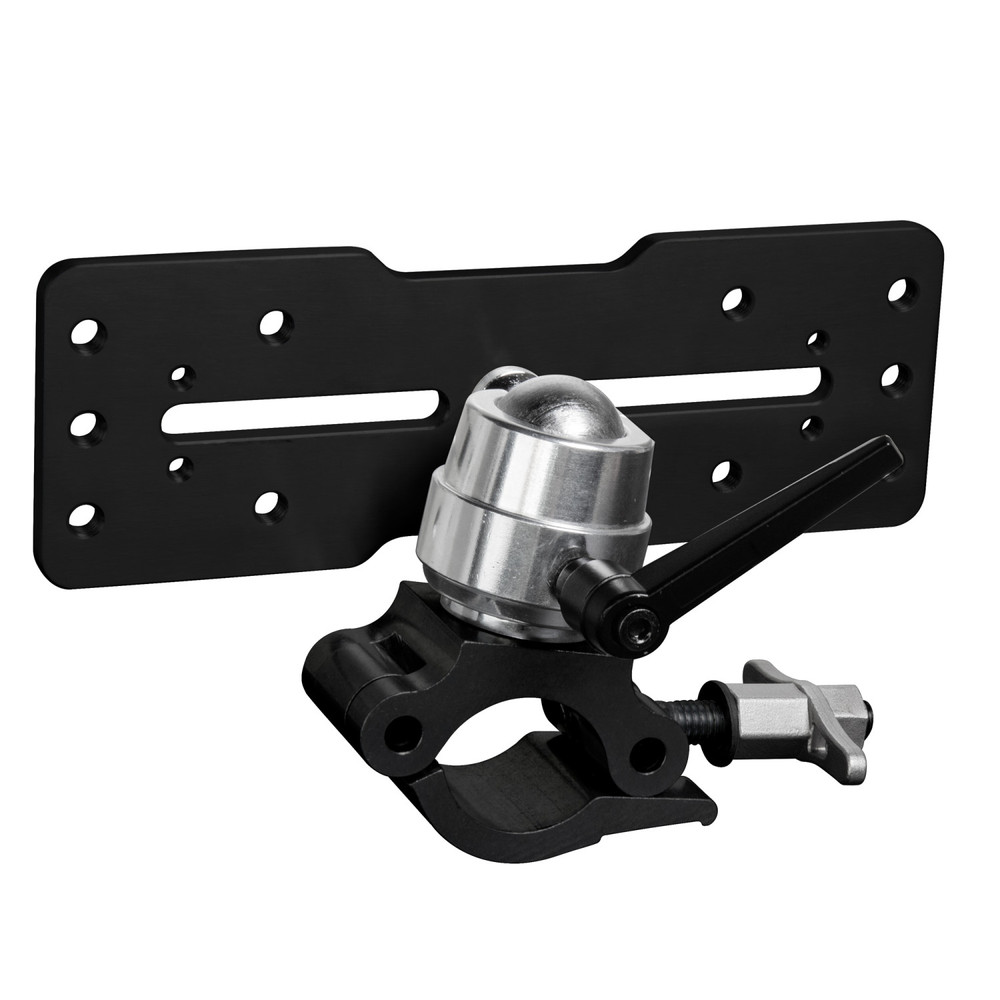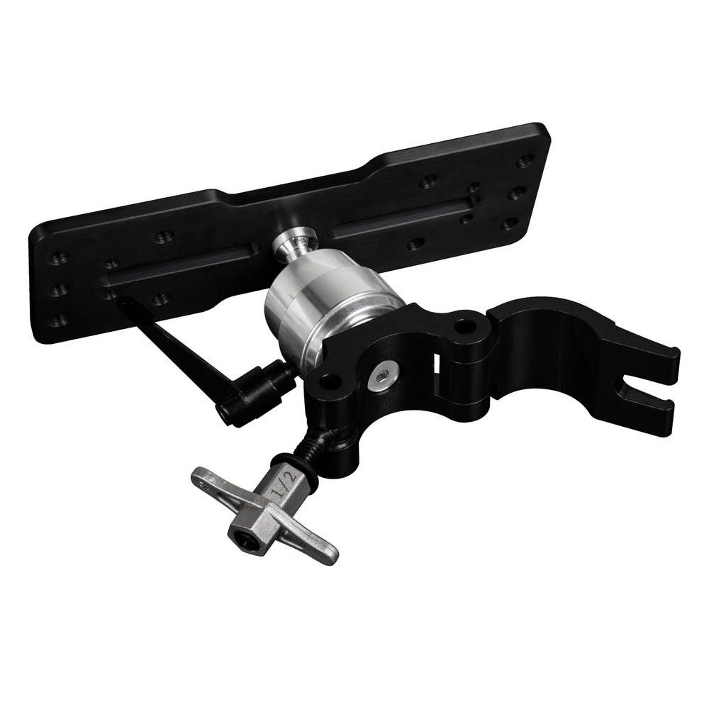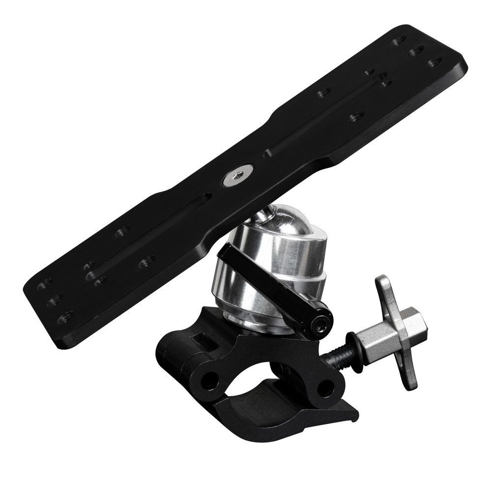 Constructed with a heavy-duty steel ball engineered with a camera mounting plate and aluminum coupler for a 2” (48-51mm) pipe/tube, this system provides a great mounting solution for rapid camera mounting and rigging. The camera plate has a standard hole pattern with threaded bore and slots allowing a dovetail slide plate or camera to attach. The ratcheted handle with the ball allows for easy adjustment of the camera to any desired position. This high-tensile strength aluminum coupler is made to fasten on to 2” (48-51mm) tube/piping.