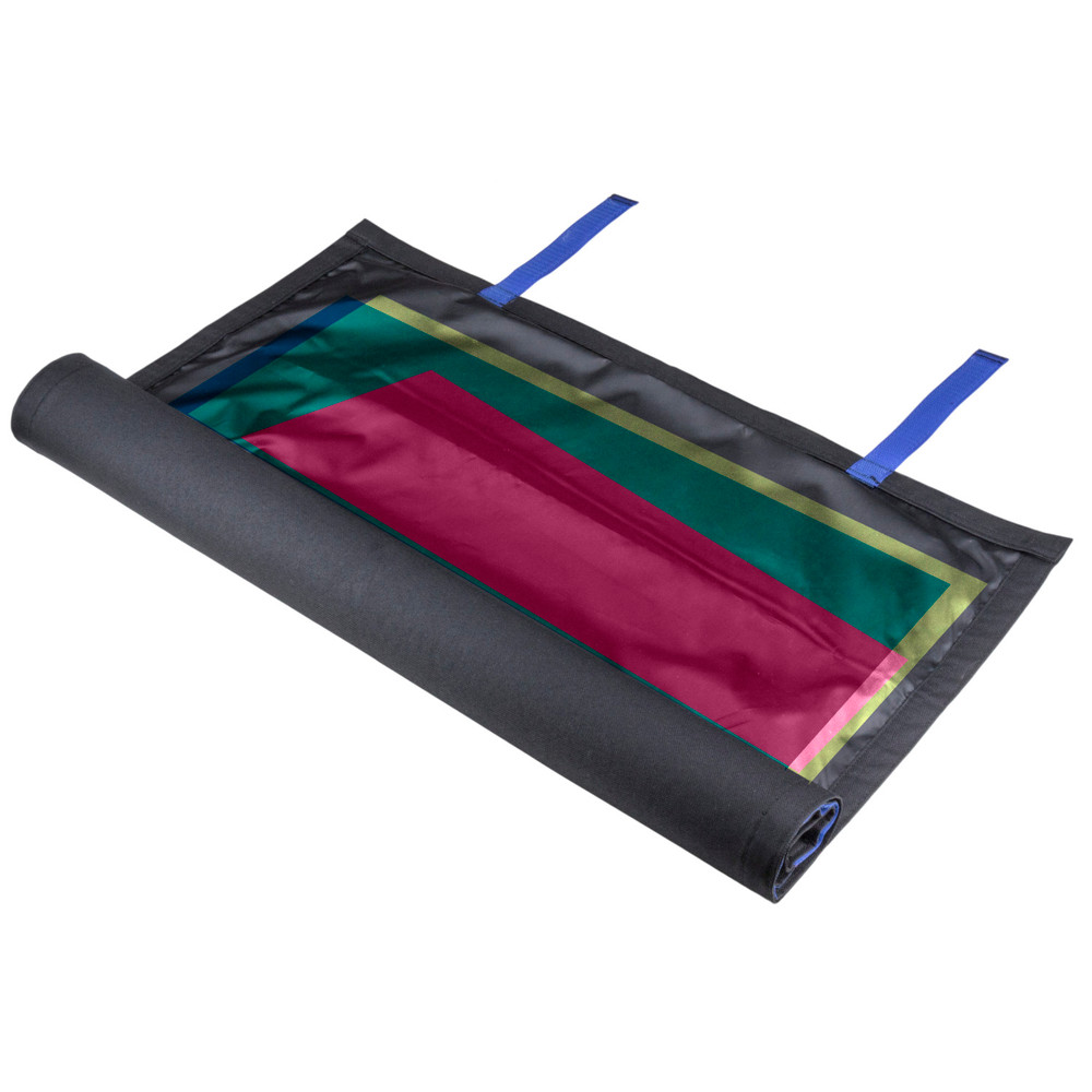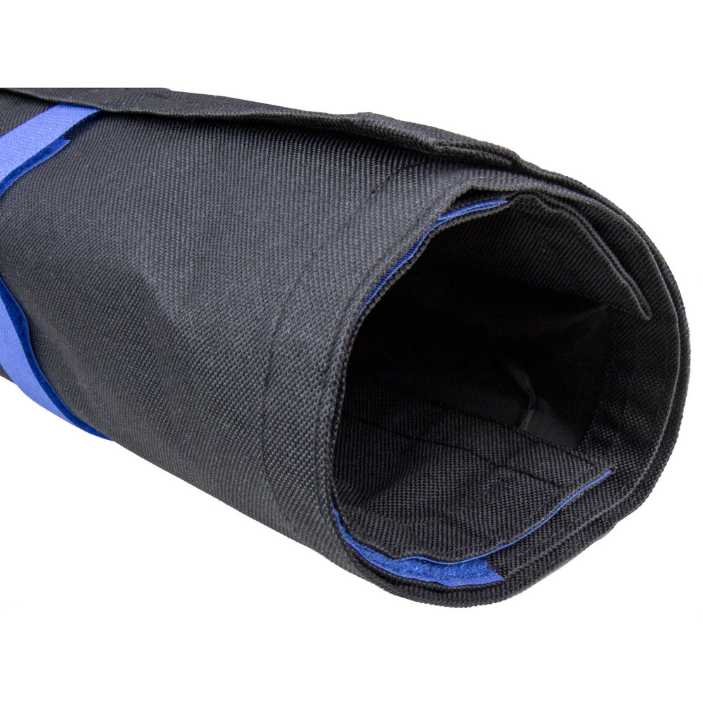 The Kupo Gel Roll allows you to keep gels and filters organized and safe in one neat roll when not being used. The unfolded size is 32in(L) x 26in (W) which is large enough to store up to 100 pcs. The additional pouch stitching on the roll allows you to keep the gels and filters in place. Meanwhile, the inserted gels and filters can be folded and rolled up into a 26in length with a 5in diameter cylinder, and can be rolled and securely closed with two Velcro-straps which are attached to the roll. A central carrying handle makes transportation easy and convenient.