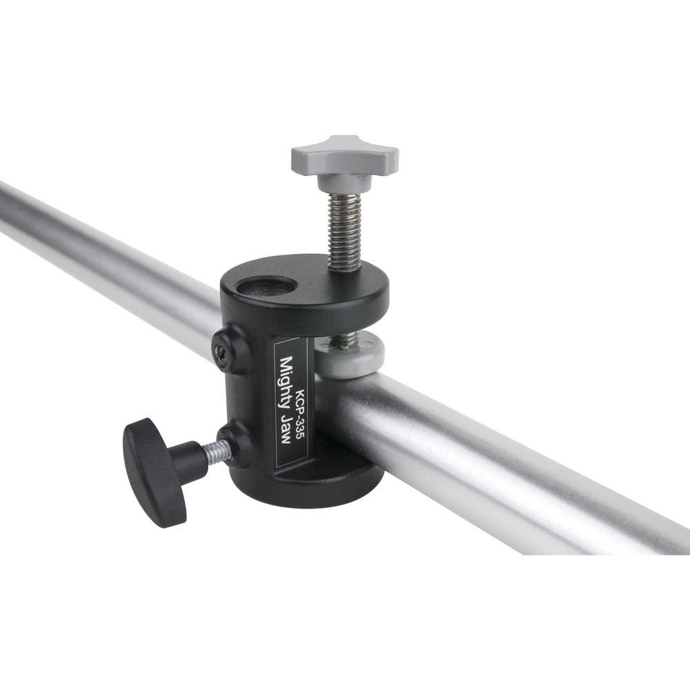 An ideal clamp for use in studio or on location. The 5/8″ receiver can connect a number of items with a 5/8″‘s stud. Constructed by sturdy die cast aluminum the Mighty Jaw Clamp can mount on to flat surfaces or round tubes up to 35mm (1.38″) in diameter and weighing no more than 2-3lbs.