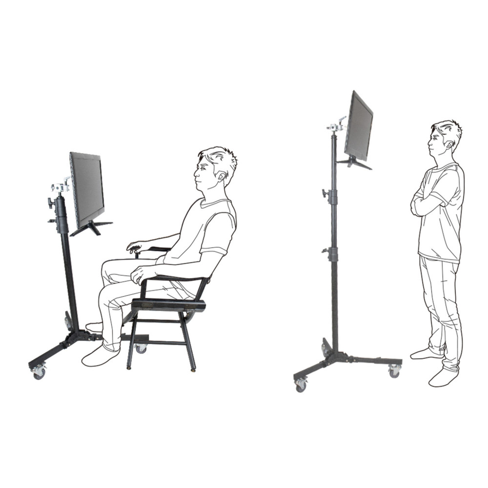 Manufactured from black chrome steel, this monitor stand is also ideal for supporting lights and camera sliders. The height-adjustable screen placement allows for ergonomic viewing from seat height to standing eye-level.