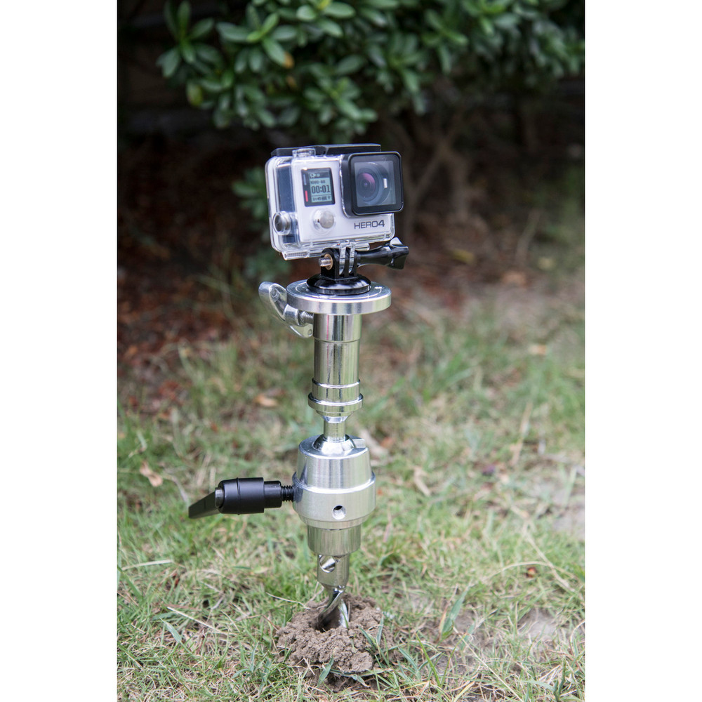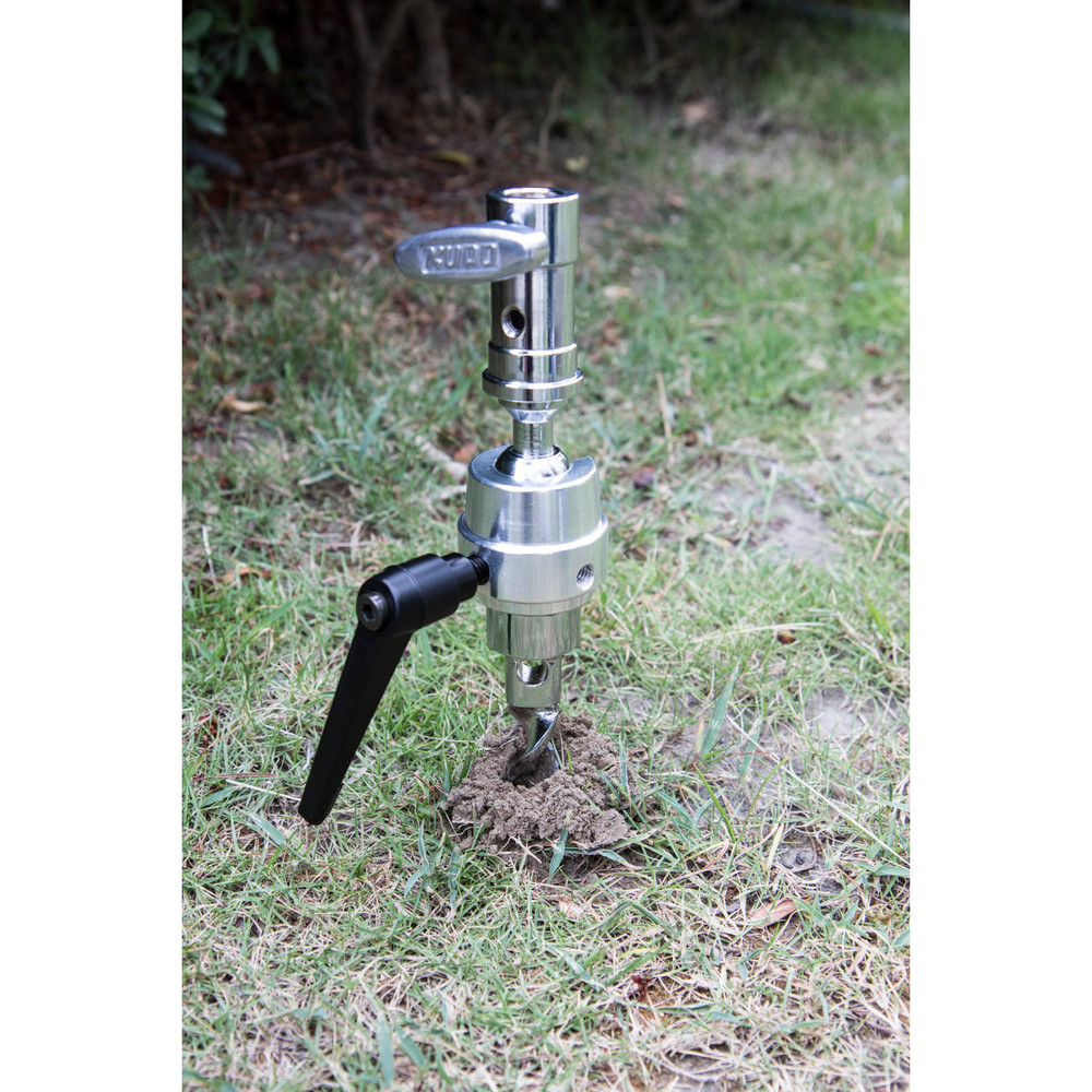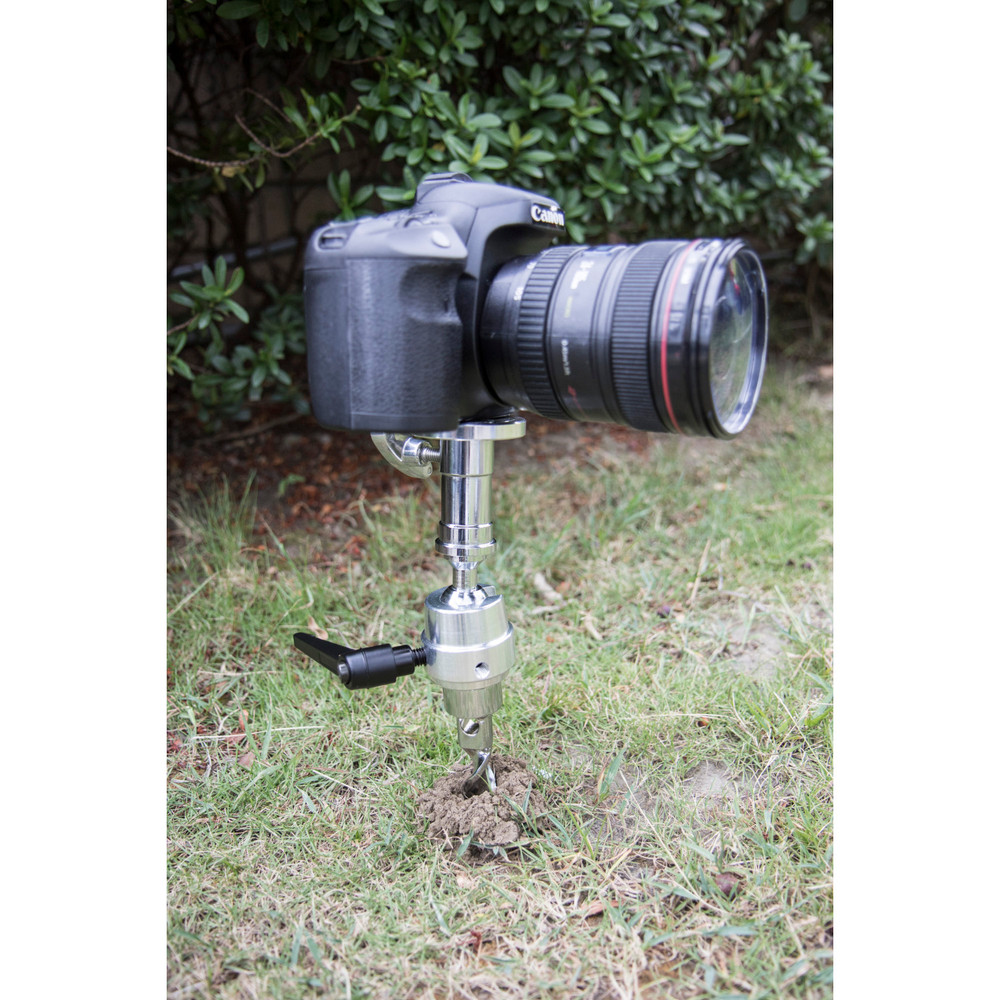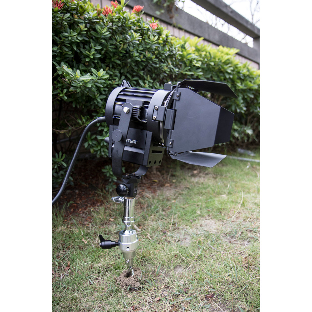 Made of chrome plate steel, the 25.4cm (10”) long auger spike is welded with a swivel 16mm (5/8”) baby receiver for ensuring stability of lighting fixtures, cameras and other accessories when drilling into sand or soft ground. Features a ratcheting handle which allows all axis to be locked positively with one locking handle.