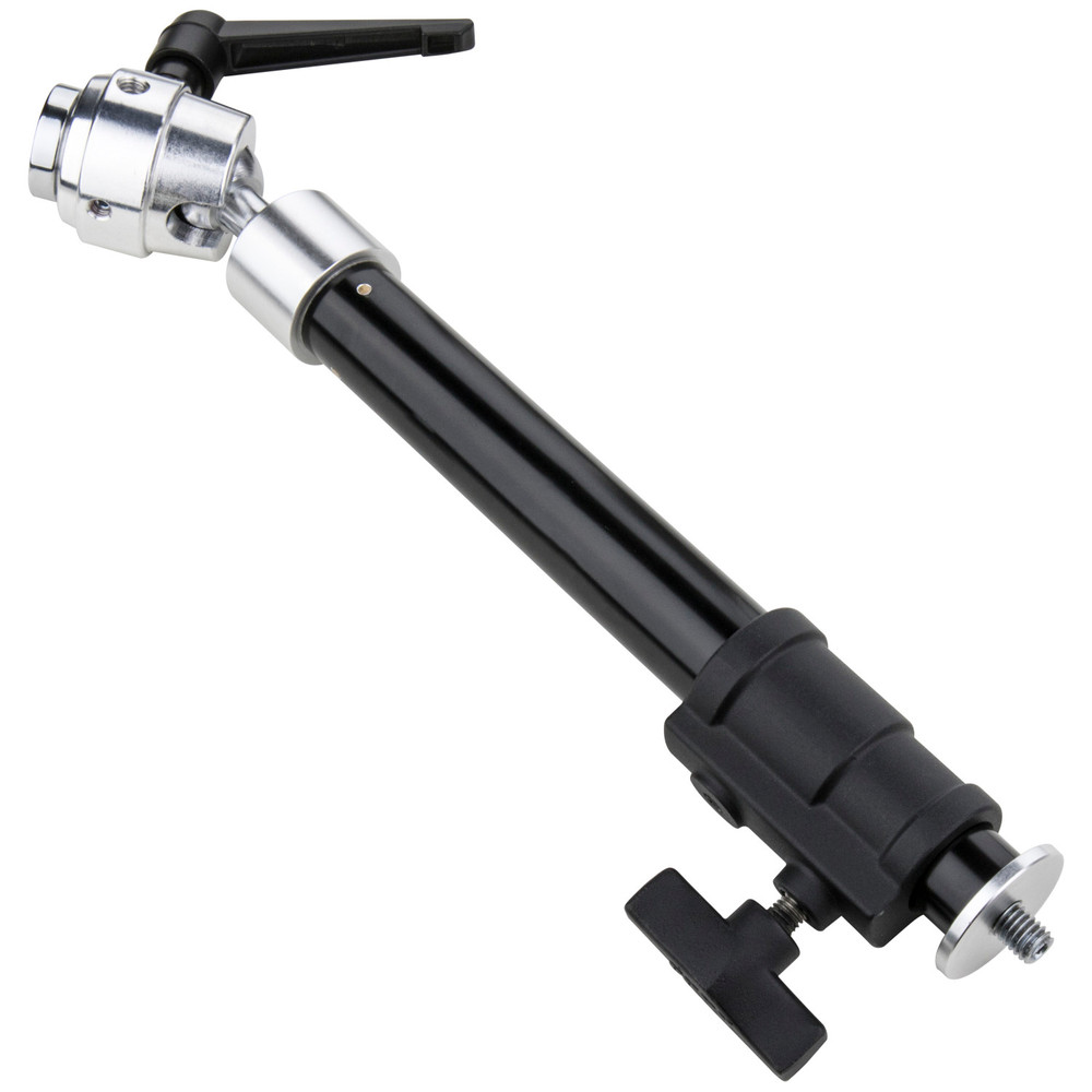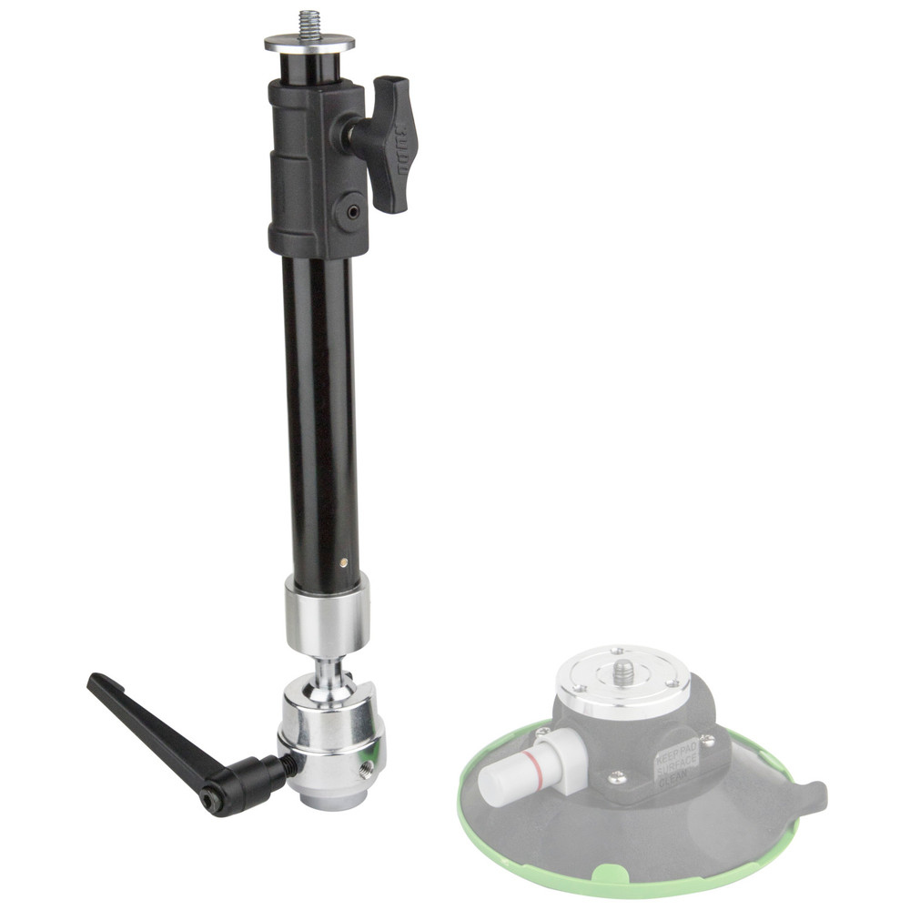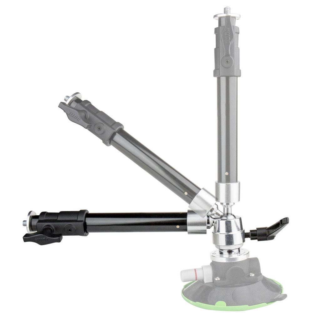 Constructed from black anodized aluminum, the extension riser includes one riser and two sections which comes with a 3/8’’-16 threaded male stud in one end and a 3/8’’-16 threaded female in the other. The Super Riser also features a heavy duty metal ball head with a 3/8’’-16 threaded male stud and a 3/8’’-16 threaded female in the base. The Super Riser is designed primarily to precisely position the camera in any position with the height-adjustable column and the ball joint adapter. Ideal for car mount shooting. The height can also be extended from 27cm (10.7’’) to 43cm (17’’).